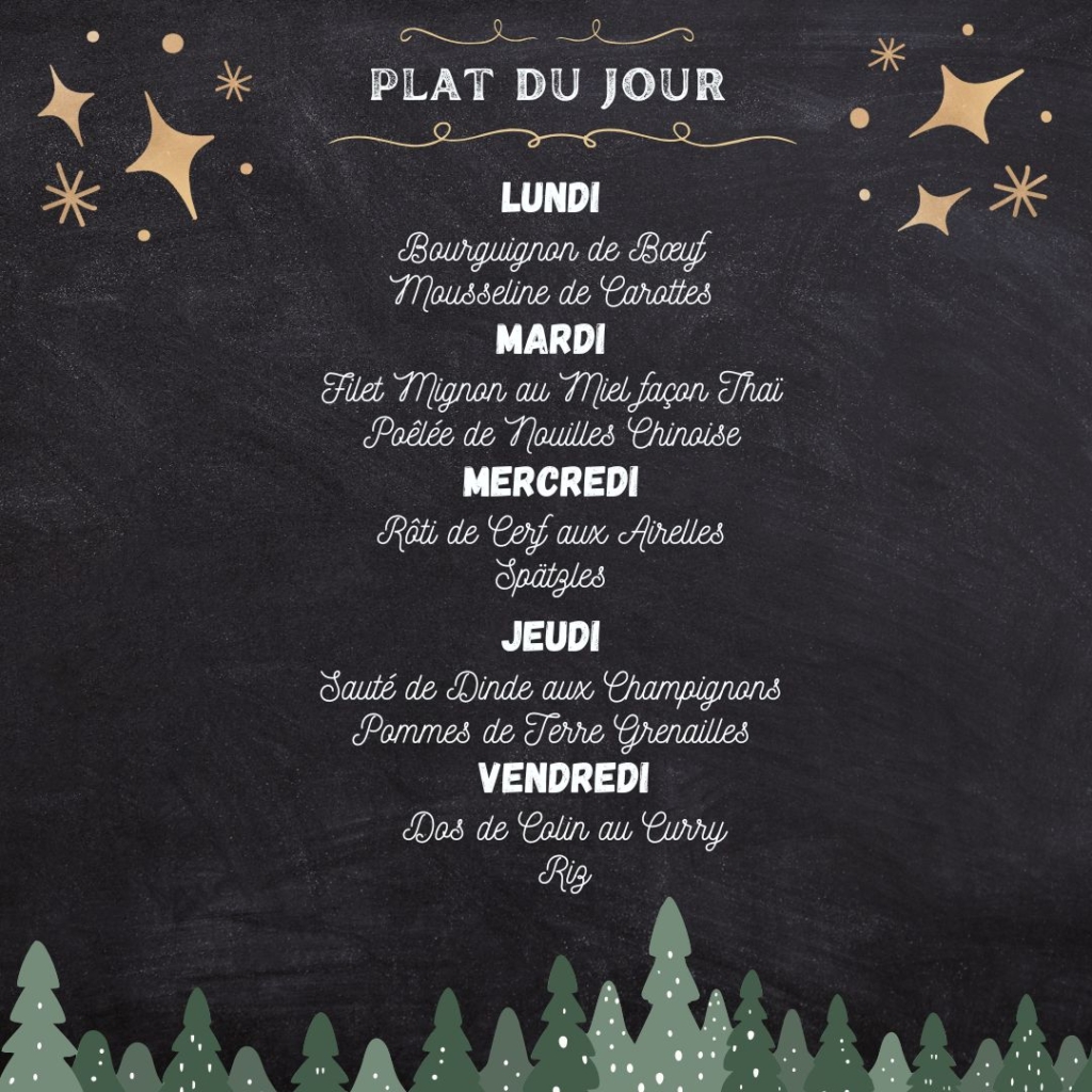 Découvrez nos plats du jour faits maison, préparés avec amour par notre service traiteur. Chaque semaine, notre équipe met en avant des produits locaux de saison pour vous offrir une expérience culinaire authentique et savoureuse. Du terroir alsacien aux inspirations d’ailleurs, nos plats varient selon les arrivages et les saisons, garantissant fraîcheur et diversité à chaque visite.